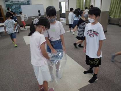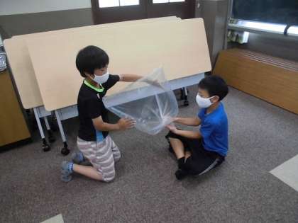 4年生の理科「とじこめた空気と水」の学習の様子です。