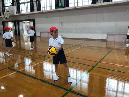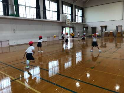 友達の胸に向かって投げるのは,なかなか難しかったようですが,友達と声を掛け合いながら楽しくキャッチボールをしていました。