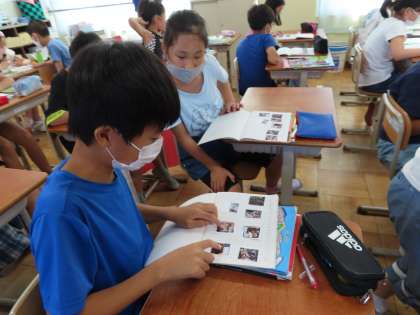社会科の学習で,長崎漁港に水あげされた魚が,どのように食卓へ届くのか,写真資料を並び替えて考えました。