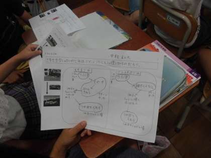 子どもたちは,ごみ処理の仕方について,「燃やすんじゃないかな…」や「燃やす前にまずは細かく砕くんじゃないかな…」などと予想しました。