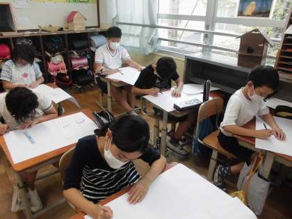 聞いたお話からイメージをひろげ,作品をかくことができました。