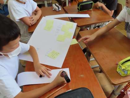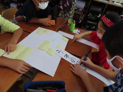 インターネットへの書き込みが原因で,大きな問題を起こしてしまう主人公の動画を視聴し,班でインターネット上に書き込みをするときに,どのようなことに気を付ければよいか考えました。