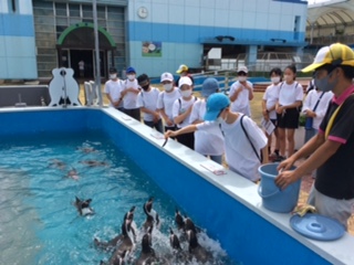 ペンギンのエサやり