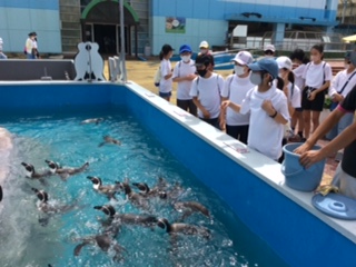 最初はペンギンのエサやりです。