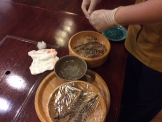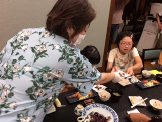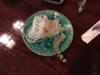 タコを切り分けていただきました。日間賀島の名物だそうです。次は、海老のおどり!?
