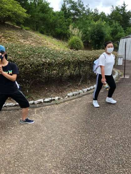 距離を取りながら見学してます!