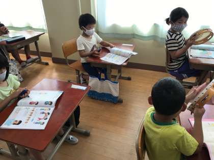 音楽では,はくをかんじるためにタンブリンやカスタネットを使ってリズムあそびをしました。