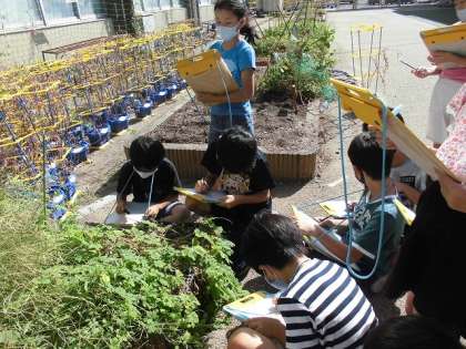 今日は,学年の花壇にツルレイシの観察へ行きました。