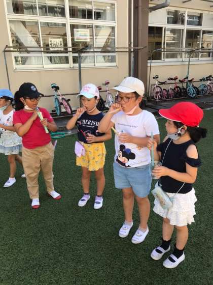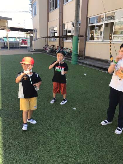 シャボン玉をたくさん飛ばした後は,絵日記をかきました。