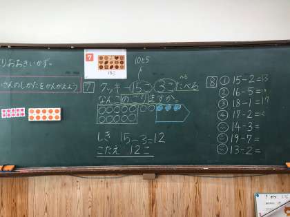 子どもたちは,10より大きい数のたしざんやひきざんの計算の仕方を考えました。