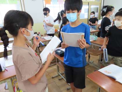 いつも通り,友だちと意見を交流しながら考えを深めていました。