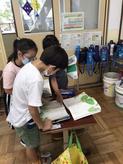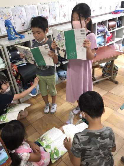 「ぼくがここを読む!」「わたしは,ここを読みたい!」などとお話に出てくるあおむしたちのように言い合いをしながら,最後にはなかよく音読をしていました☆