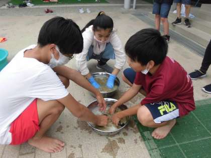 洗剤を溶かして,靴下をもみ洗い,つまみ洗いをしていきます。