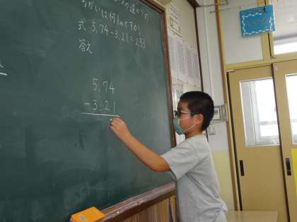 位をそろえるということを意識して小数の筆算の練習をしました。