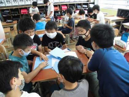 4年生では,お楽しみ会にむけてグループにわかれて遊びの準備をしました。