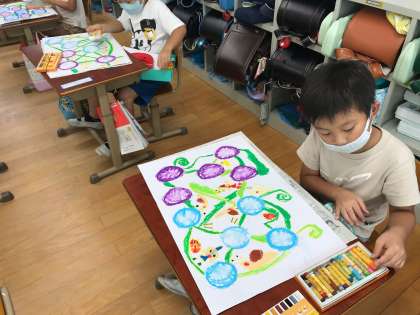 アサガオを元気いっぱい描きました!