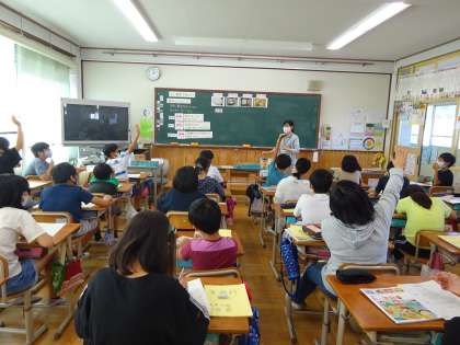 栄養教諭の先生に,「朝ご飯の大切さ」について教えていただきました。
