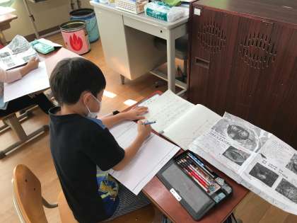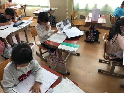 国語の学習では,自分の調べたい生き物のかくれんぼの仕方について説明します。