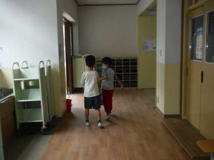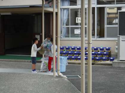 掃除時間は,みんなで力を合わせてしています。掃除時間の放送で「大きく今日がんばったクラスはそらいろです!」と流れると大喜びです!最後にごみ箱を用務員のところまで持って行き「おねがいします!」3年生が1年生にやさしく教えます。