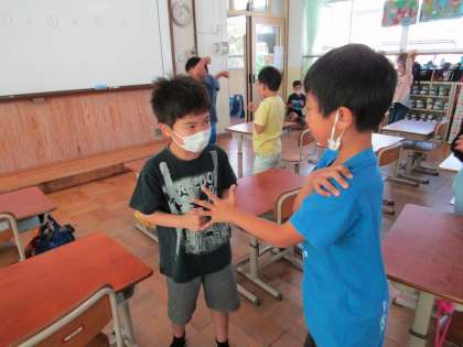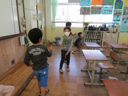 主に,体動かしたり,歌ったりする活動を通して,表現に慣れ親しんでいます。