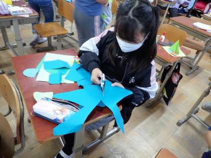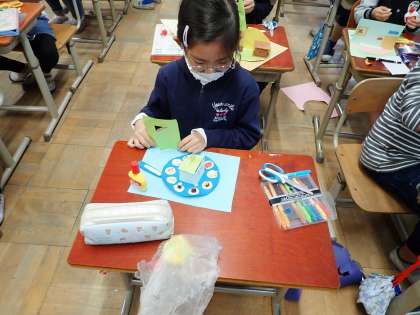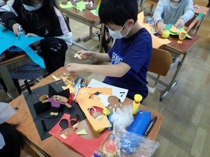 小さいものもていねいに,画用紙を切り貼りして作っています。