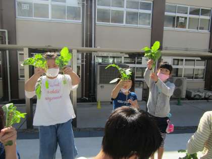 大きく大根が育つように,間引きをしました。