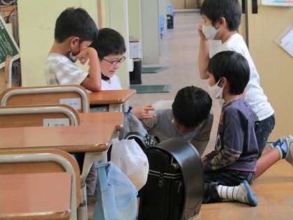 グループに分かれて,出し物を考えます。
