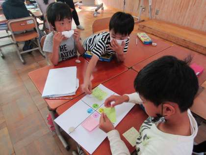 たんけん後は,見つけたことや疑問に思ったことを書き留めています。