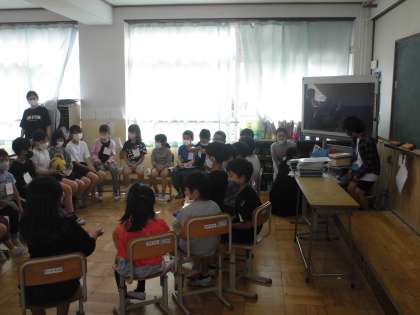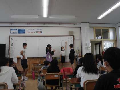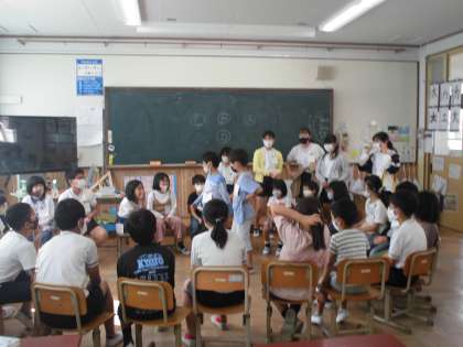 6年生が中心となり活動します。前に出てまとめることにはまだ慣れていない子どもたちですが,グループのみんなに楽しんでもらおうと思い,一生懸命に活動していました。