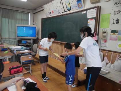 今までそうじや給食を手伝っていた6年生に向けて,お礼の手紙を渡してくれました。