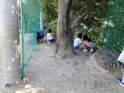 葉っぱや枝などを集めに校内を探検しました。