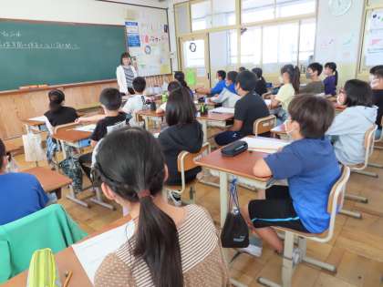 総合的な学習の時間に,大宮保育園から保育園の先生にお越しいただき,保育士の仕事や働くということ,職業についての話を聞かせてもらいました。
