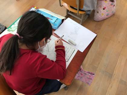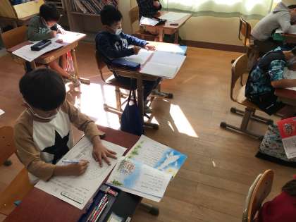 子どもたちそれぞれに想像を広げた会話をワークシートに書いていて,改めて子どもたちの想像力はすてきだなと思いました。