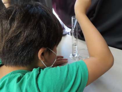 練習が終わったら,しっかりメスシリンダーを使いこなせるようになったか検定です。