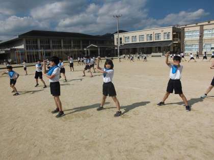 ソーラン節の曲を聞いて,しっかりと踊ることができました。