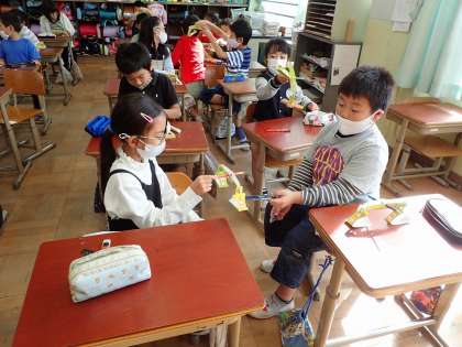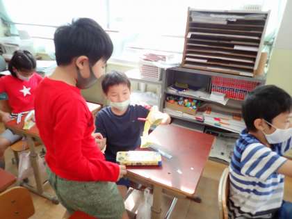 てんびんを使って,いろいろなものの重さを比べてみました。