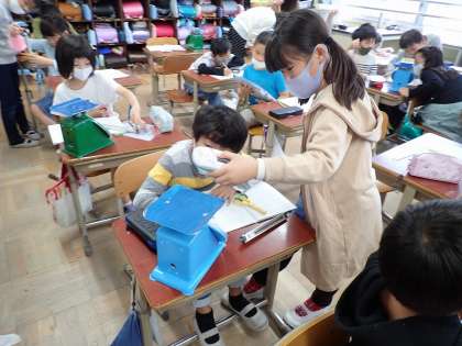はかりを選んで,いろいろな物の重さをはかりました。