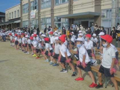 子どもたちは元気いっぱい準備体操をしていました。