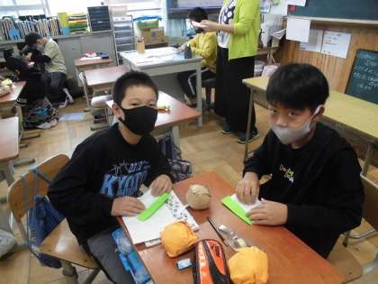 来週のハロウィンパーティーにむけて,準備がすすんでいます。