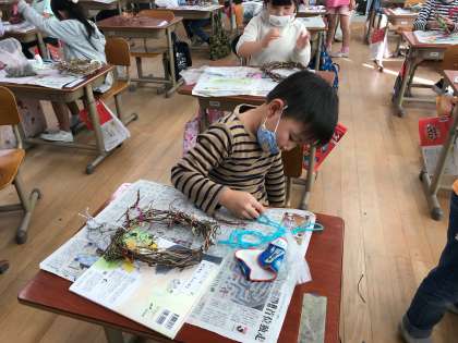 いろんな飾りを持っていて,友達に分けてあげている子もいました。