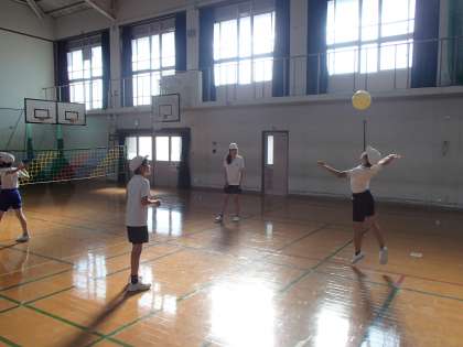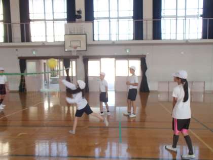 体育科の学習で「ソフトバレーボール」に取り組んでいます。