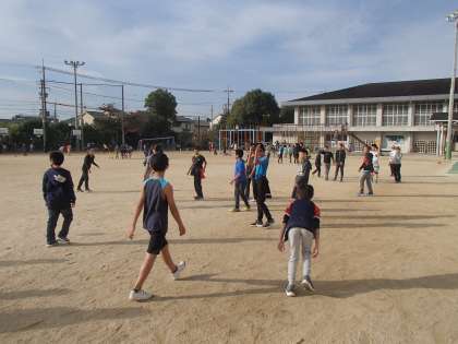 朝休みから運動場は賑やかで,たくさんの子どもたちが元気よく遊んでいます。
