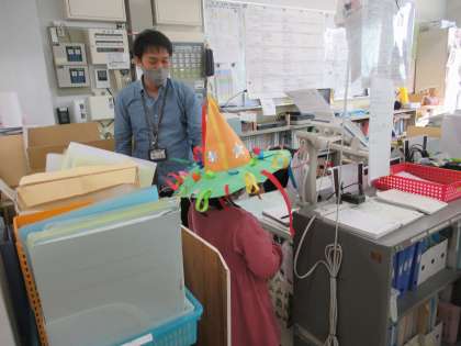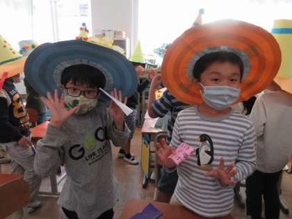 手作りの帽子をかぶって,校舎を練り歩きました。