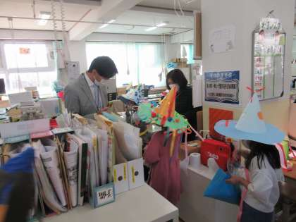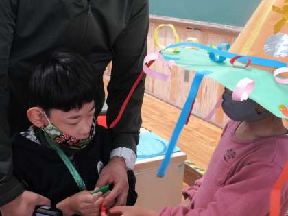 その帽子いいなぁ。とみんなに言ってもらって,とっても嬉しそうな2年生!
