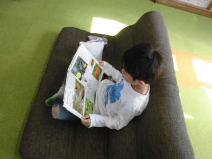 図書館では静かに自分の選んだ本を読んでいます。