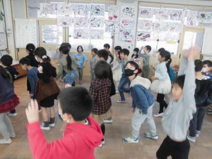 3拍子を体で感じるために手拍子や体を動かして学習しました。