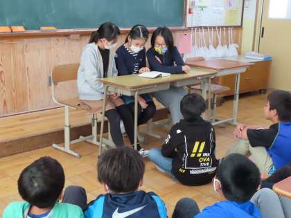 クラスのみんなにアンケートをとって,希望が多かった怖い話の読み聞かせでした。高学年になると,こんな読み聞かせのパターンもあるんだなぁと驚きです。
