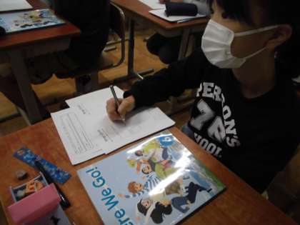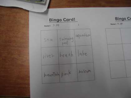 今日はいろいろな場所の英語を確認して,ビンゴゲームをしました。
