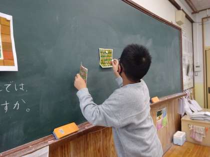 算数の授業で広さの比べ方について考えました。
