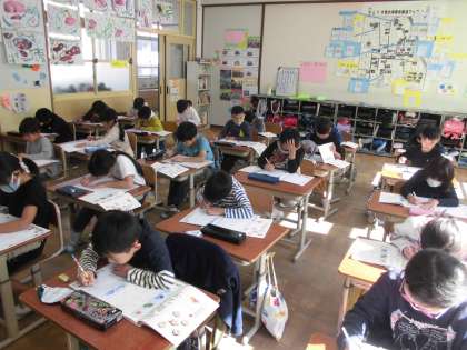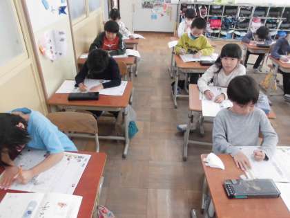 書写の時間は,いつもよりゆっくり丁寧に字を書いています。